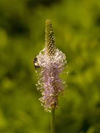 Detail blossoming flower plantain or PIantago on a green background, Sofia, Bulgaria