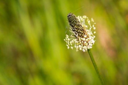 Macro of a flower of ribwort plantain with Clanoptilus elegans. Unfortunately not so sharp picture of an extinct beetle. But perhaps one of the last.