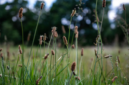 A selective focus of eleocharis palustris in a field under the sunlight with a blurry background