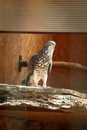 Crested serpent eagle in captivity at zoo. Spilornis cheela is a bird of prey that is found in forested habitats across tropical Asia