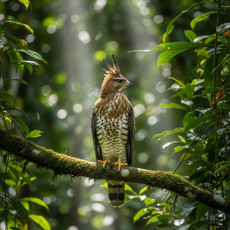 Crested hawk eagle perched in a branch