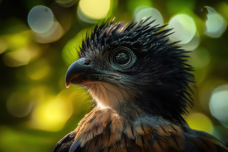 Closeup bird of prey portrait of a crested serpent eagle