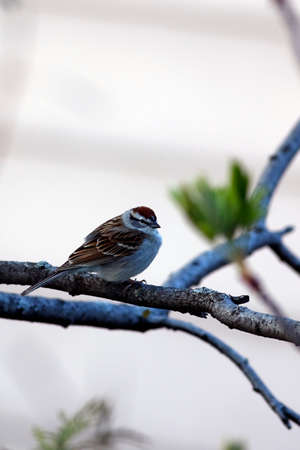 Songbird Tree Sparrow (Passer montanus) sitting on branch.