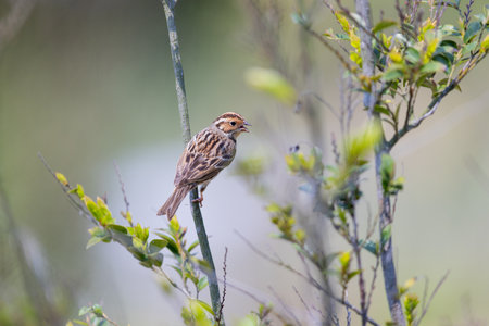 Common reed bunting (Emberiza schoeniclus) sitting on reed