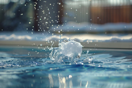 Crystal-clear water captured mid-splash, creating a refreshing and dynamic display of droplets suspended in time.