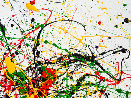 This vibrant and dynamic artwork features colorful paint splatters on a clean white background, perfect for adding a modern and artistic touch to any space or project.