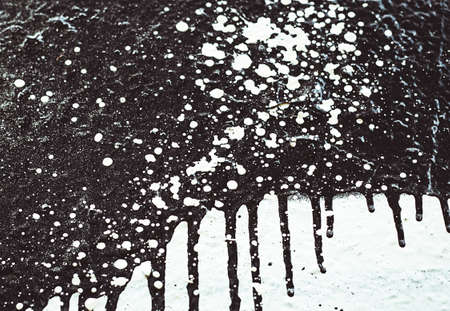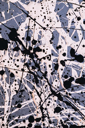 Abstract expressionism. Picture painted using the technique of dripping. Mixing different colors white and black. Lines and spots. Vertical orientation.