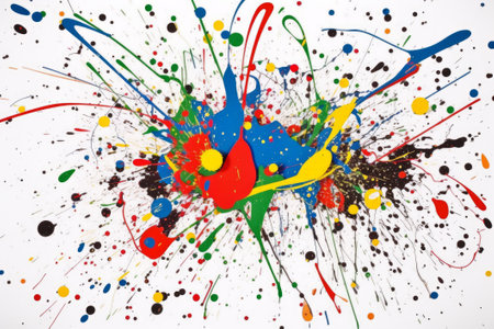 Bright and colorful splashes of paint create an abstract explosion on a white background showcasing artistic expression