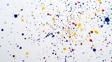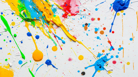 Vibrant paint splatter on a white background creates a playful and dynamic visual. Perfect for creative projects, artwork, and decorative use, this colorful display adds energy and excitement.