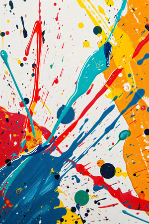 Vibrant abstract artwork showcasing dynamic paint splashes against a subtle neutral backdrop