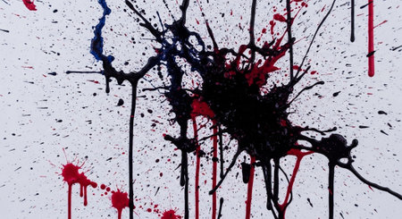Multicolored paint splatters creating a vibrant and energetic texture, perfect for creative projects or backgrounds.