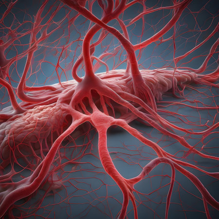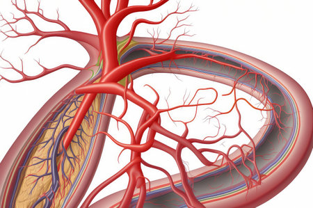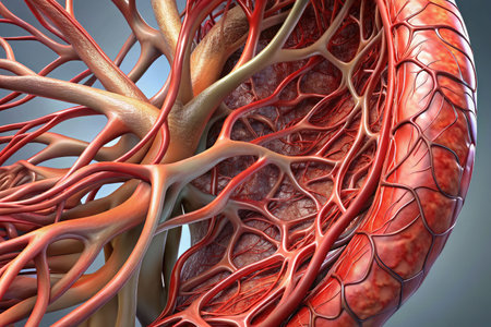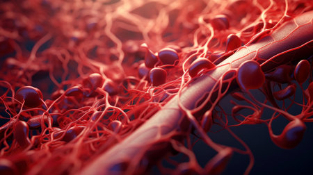 Detailed close-up of blood vessels in human tissue