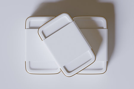 Top view of two white plastic trays on white background. 3d rendering