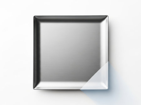 Realistic metallic empty square tin serving tray for kitchen and catering use