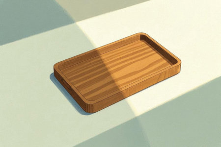 Wooden tray on white background with shadow from the window. 3D illustration.