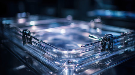 This image showcases a clear acrylic box featuring a secure locking mechanism, ideal for contemporary storage and display. The reflective surface enhances aesthetic appeal.