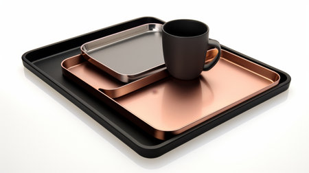 Metallic Trays For Carrying Dishes Isolated on White Background
