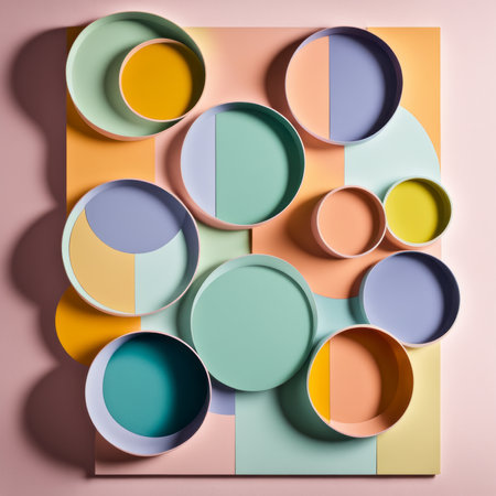 Abstract geometric background with circles in pastel colors. 3d render