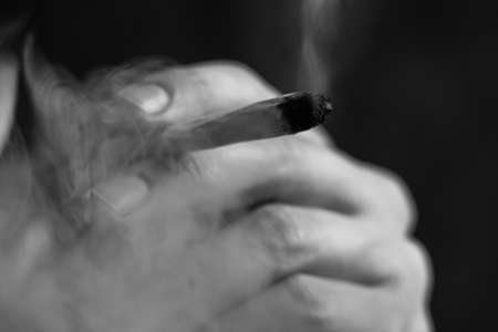Smoking joint. Hand close up