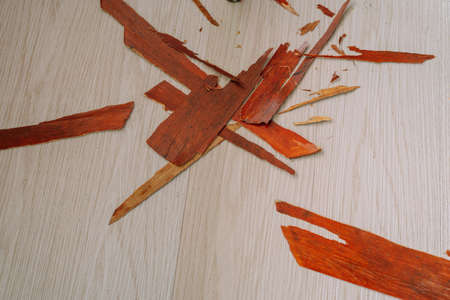 old table laminated discarded spokeshave scapele exotic hardwood board chip shavings