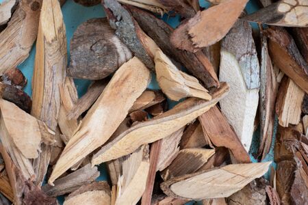 Chopped wood close-up. Wood chips for smoking. Wood texture or background