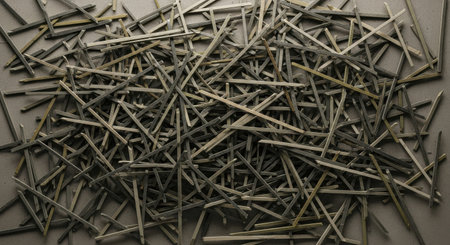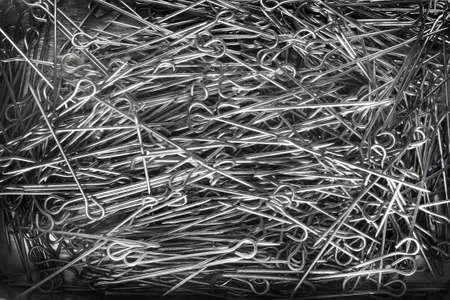 A lot of construction iron pointed nails, industrial parts, isolated on balck background