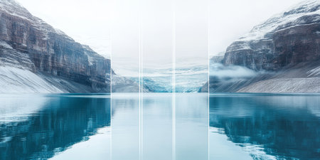 Collage With A View Scenic Glacial Panoramas Of Pristine Landscapes Through White Lines