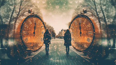 the concept of time travel through the creative use of double exposure and other techniques. the essence of temporal echoes, where the past and present coexist in a mesmerizing visual narrative.