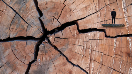 A striking image of a lone man standing on a cracked wooden surface, symbolizing resilience and connection to nature while capturing a sense of solitude.