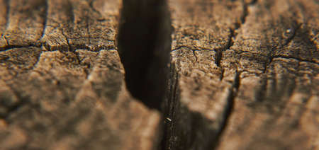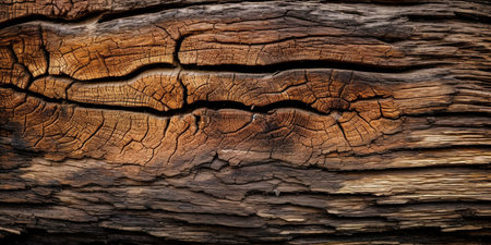 A detailed macro shot reveals aged wood's intricate grain and deep fissures, showing warm amber hues and a rugged, timeworn character perfect for rustic themes.