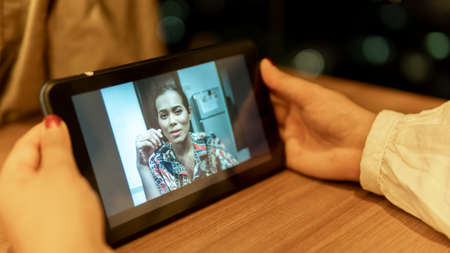 Bali Indonesia June 2, 2020 : Close up hand playing Tik Tok on the smartphone, Scrolling Tiktok Social Media