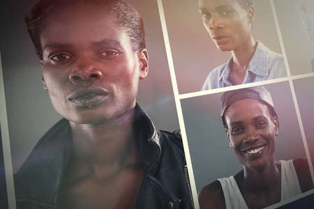 Collage many diverse Afro American business successful people of different ages looking at camera during online video meeting. Business group of people on a screen computer or laptop, have video call.