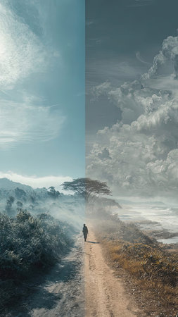 Man at two roads deciding for best chance of environment protection. superlative generative AI image.