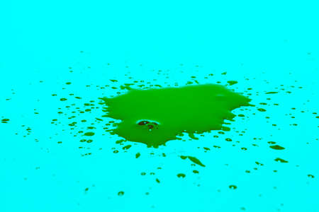 Oil splatter. Colorful stains. Red blue black fluid splash spreading on light background paint explosion abstract creative illustration.