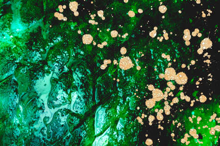 Liquid green Alcohol ink fluid abstract art with gold glitter and shades