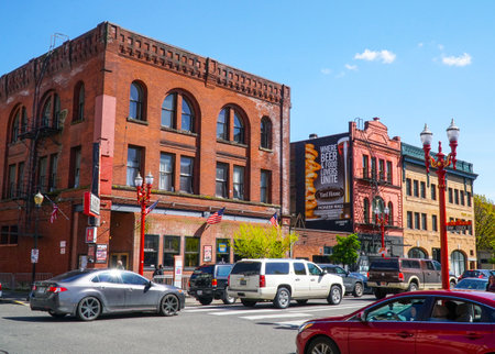 Street view of Portland Chinatown - PORTLAND - OREGON - APRIL 16, 2017