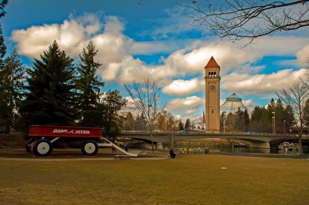 The stunning Riverfront Park in Spokane Washington shows off the sparkling waters of the Spokane River.