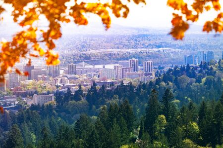 Panorama view of Portland and Marquam Nature Park, Oregon, USA