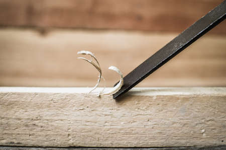 Cutting with a chisel on wood