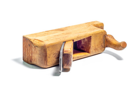 Old carpentry planer, vintage wood planer close-up,
