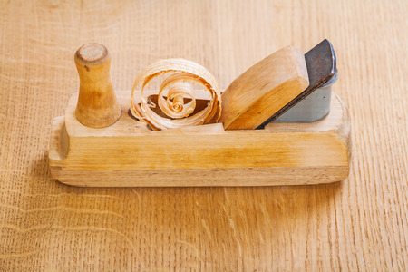 woodworkers plane on wooden board close up