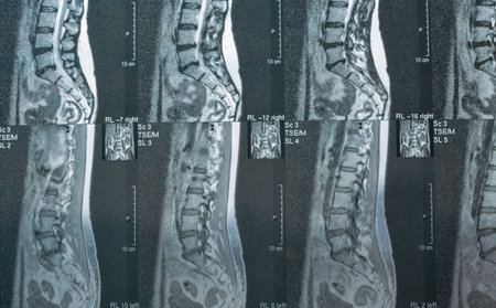 Close up magnetic resonance imaging or computed tomography scan of human lumbar spine