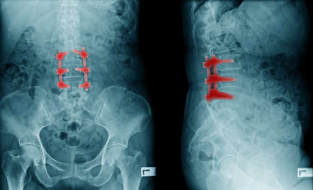 X-ray film of spinal metal implants.