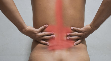 X-ray Image Showing Lumbar Spine with Red Pain Indicator