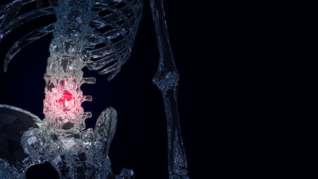 Detailed anatomy 3D illustration illustrating an inflamed lumbar spine with inflammation affecting vertebrae AI Generative