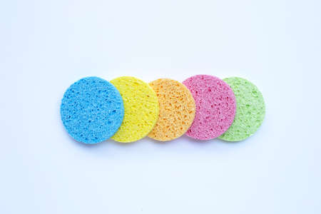 Colorful sponge for face make-up cleaning on white background