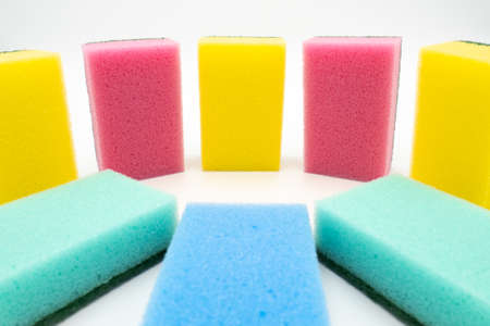 Colored sponges for washing dishes. Mock-up. Cleaning