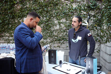 LOS ANGELES, UNITED STATES - Feb 09, 2019: Attendees in the adult-use smoking garden at WeedWeek Recharge LA Conference, a cannabis industry conference in Los Angeles.