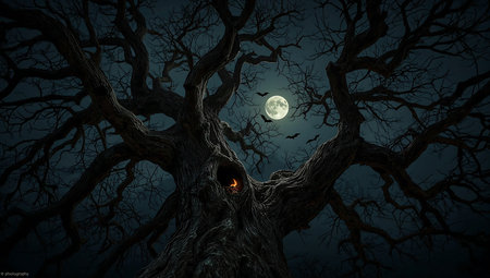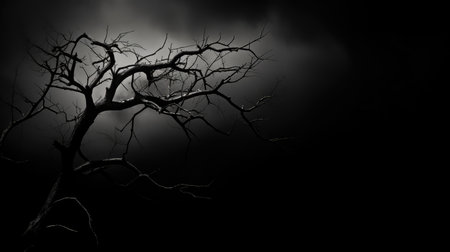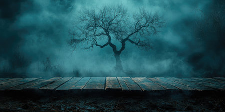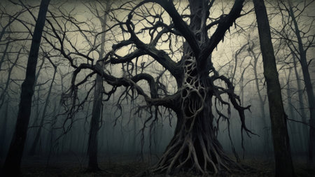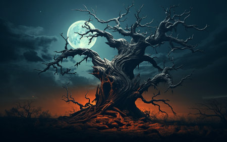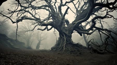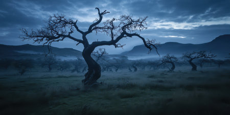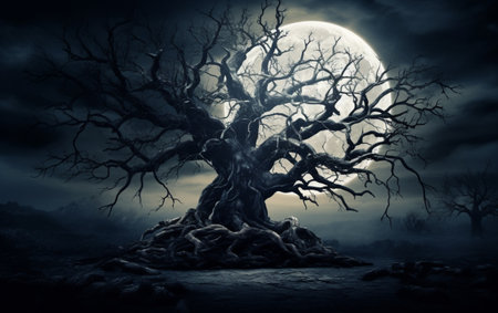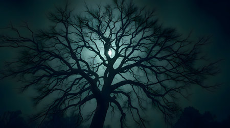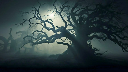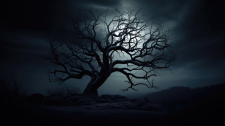 Tree dark night. Fantasy dramatic misty. Generate AI