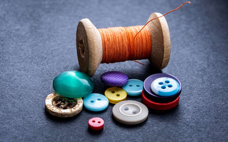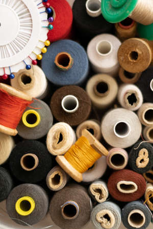 Thread rolls, Group of colorful thread on sewing desk, Craft, sewing and needlework concept.